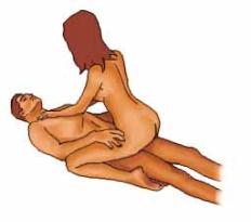 El hombre se relaja y apoya todo su cuerpo, mientras la mujer se incorpora levemente, la fusión adquiere una variante donde la penetración es más profunda. El ritmo lo sigue llevando ella y el movimiento que sale con más facilidad es el arriba-abajo que la mujer debe realizar sobre su compañero. Las manos de ella pueden tocar el pecho de él o tomar su pene como si lo masturbara para aumentar el placer de ambos.